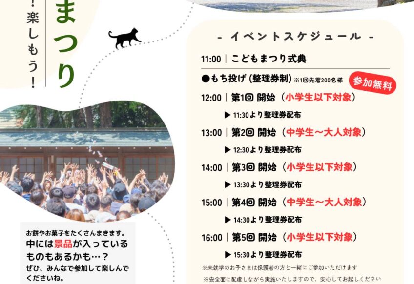 5月5日のこどもの日に合わせ、地域のお子様の健やかな成長と幸福を願う「こどもまつり」を開催致します。 神社の境内で思いっきり遊び、ご家族で楽しい一日の思い出を作っていただけるよう、様々な催しを準備して皆様をお待ちして...